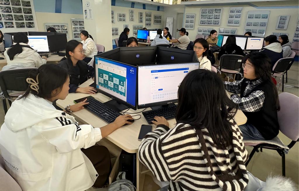 自9月下旬大赛正式启动以来,图书馆积极发挥数字素养教育阵地功能,联系系部广泛动员,组织全院600余名学生参加山东省高职院校“AI+数字素养”校内选拔赛。备赛期间,图书馆组建专业指导团队,启动数字素养提升训练营,针对数字素养基础知识、信息检索策略以及操作技巧、AI技术应用等核心模块开展专题培训。团队通过“一对一”和“一对多”线下指导、微信群线上答疑等形式,为参赛学生提供精准指导;同时组织多轮模拟竞赛还原比赛场景,帮助参赛学生熟悉比赛流程、优化答题策略、调整应试心态,全面提升竞技水平,以最佳状态备战正式比赛。