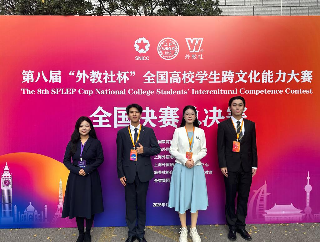 12月11日-14日,第八届“外教社杯”全国高校学生跨文化能力大赛决赛在上海外国语大学举办。我院24关务1班全英豪、25国贸1班王康宇、25跨电2班刘雨萌组成的参赛团队斩获全国二等奖。