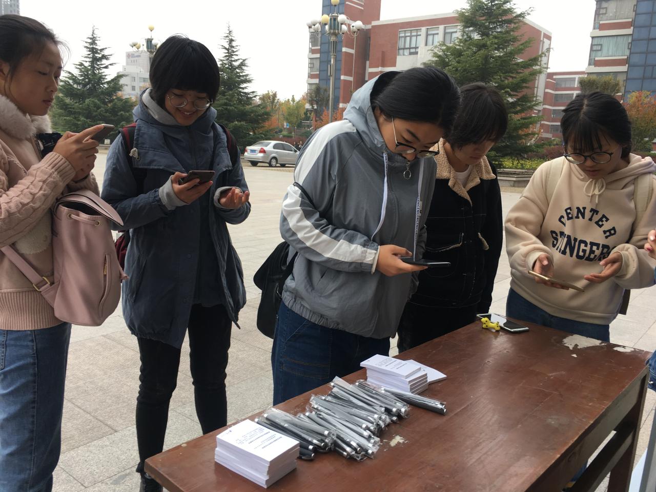 超星“学习通”作为一个集资源、空间、社交为一体的移动知识数据平台为此次听书打卡活动提供了强有力的平台支持。本次活动受到了读者的热烈欢迎,读者在现场老师的指导下,纷纷下载“学习通”APP,进行注册、登录参加“每日一书·经典导读—21天听书打卡”活动,完成第一天的听书打卡任务。在短短一个小时的时间内,100多名读者成功参与听书打卡活动。现场气氛热烈,取得良好效果。