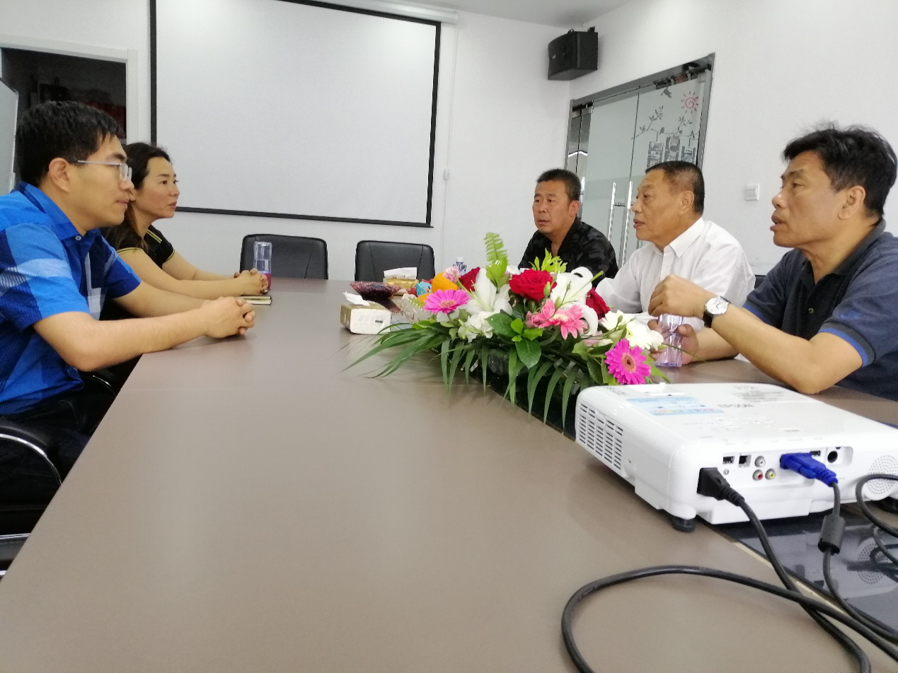 5月28日上午,我院国际贸易系党总支书记苏春鹏、商务厅选派聊城临清市戴湾镇庞庄村“第一书记”姜军升、校友办主任陈延宁一行走访校友企业青岛睫立美化妆品有限公司。