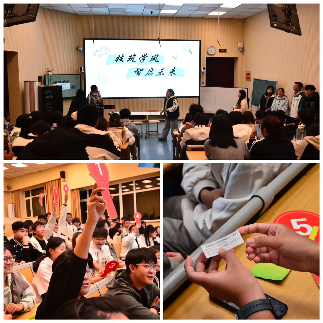 竞赛涵养优良学风,组织新生代表在1-4阶参加“学思践悟,风正扬帆”答题竞赛活动,通过趣味化、互动化的创新竞赛形式替代传统答题模式,各班代表队为集体荣誉而战,在“玩”中深化了对学术规范和校纪校规的理解,真正实现了“寓教于赛”。