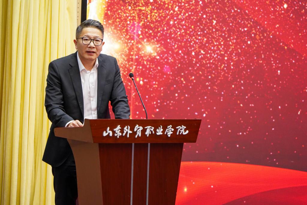 跨境电子商务系党总支书记李军作总结发言,肯定了企业、老师、学生三方的付出,勉励学生们珍惜韶华、增长才智,将来回馈母校和社会。