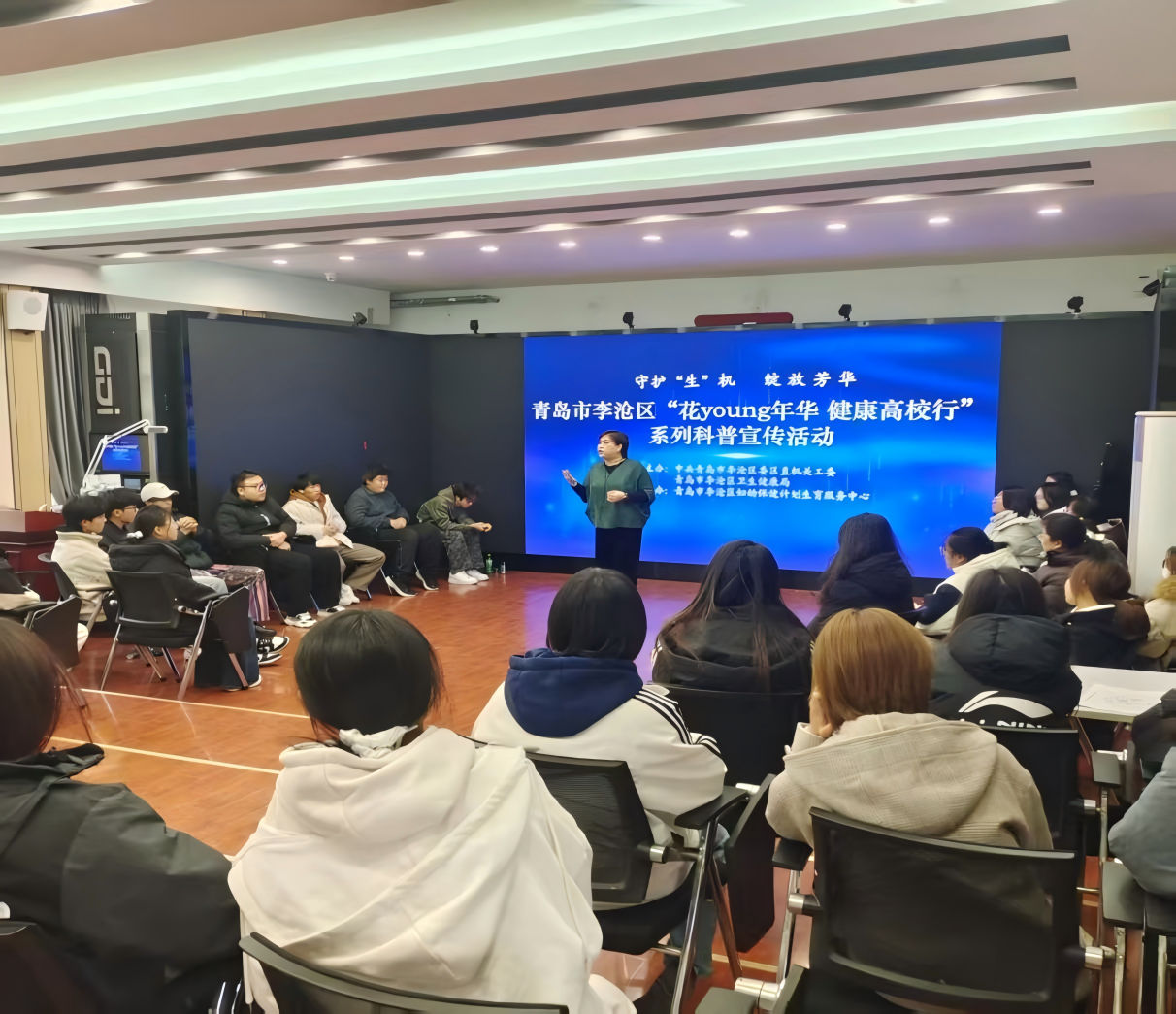 2025年世界艾滋病日来临之际,由中共青岛市李沧区委区直机关工委、青岛市李沧区卫生健康局主办,青岛市李沧区妇幼保健计划生育服务中心具体承办的“花Young年华 健康高校行”系列科普宣传活动走进我院。学院医务室积极协同承办单位于11月25日下午开展世界艾滋病日主题健康宣讲。