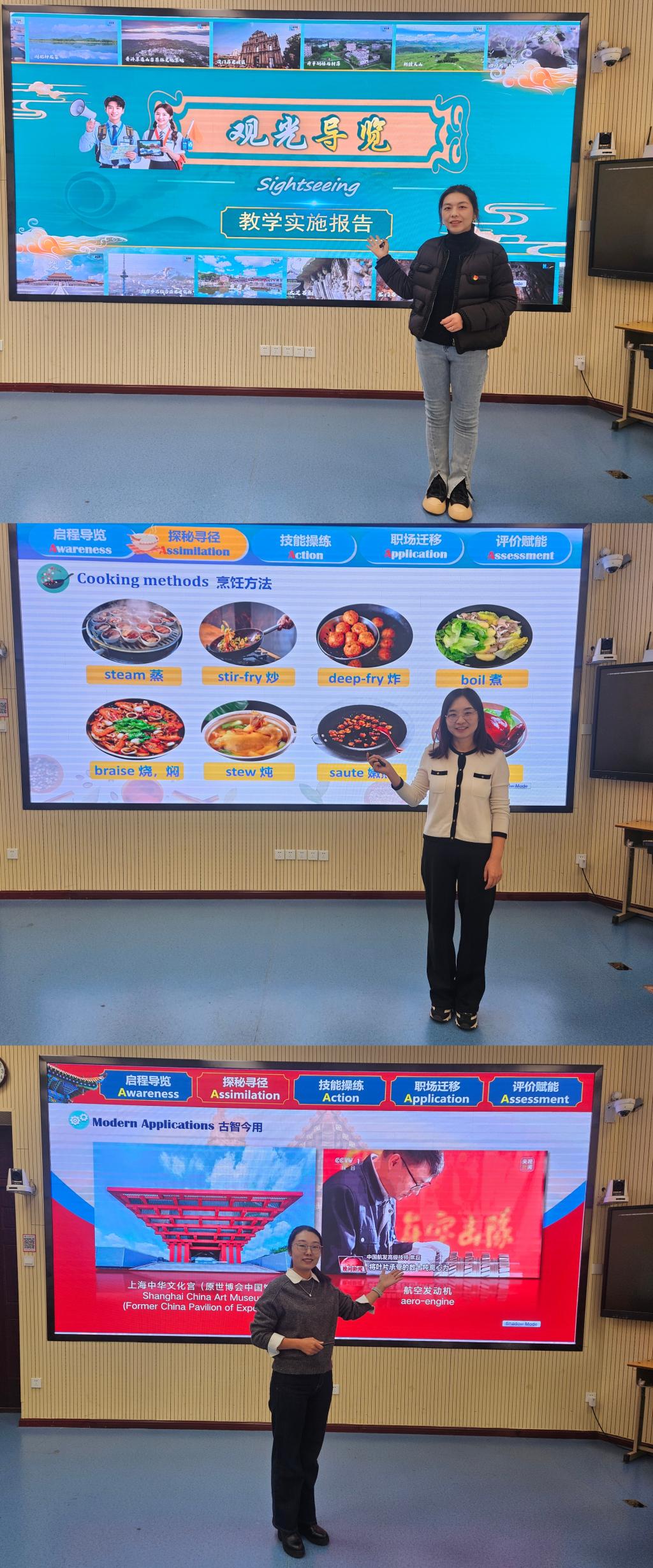 活动依次播放了薛蓓、张琳、王丹、周群四位教师在2025年学院青年教师教学比赛中的参赛视频。作品教学设计精良,体现教育理念的前沿性与科学性,教师语言表达富有感染力,数字化手段与教学内容有机融合,充分体现了以赛促教、持续精进的积极成效。随后,2025年山东省职业院校教学能力大赛获奖教学团队进行了现场展示。张霞系统阐述了参赛作品实施报告,王囡囡、万新霞分别进行了教学片段演示。展示过程环环相扣、衔接流畅,精妙的课件设计与巧妙的课程架构充分展现了深厚的教研功底与创新能力,诠释了“以学生为中心”的教学理念,彰显出团队成员扎实的教学功底与协作能力。