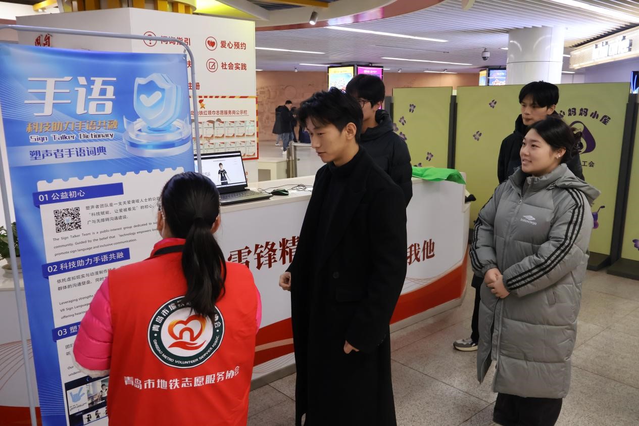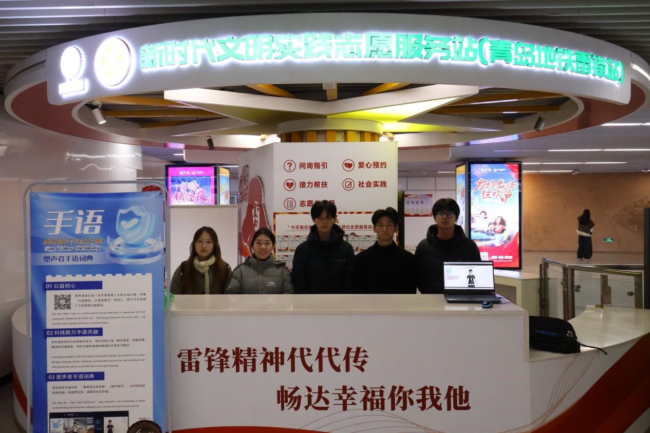 为推动专业技术与劳动教育深度融合,以科技力量打通无障碍沟通壁垒,劳动周期间,信息工程系师生携自主研发成果“塑声者手语词典”走进青岛地铁李村站,开展“青听无声,元宇宙手语共生”劳动教育特色实践活动,以“专业研发+场景实践”双模式,实现劳动教育与公益服务的精准衔接,为无障碍沟通事业注入青春科技力量。