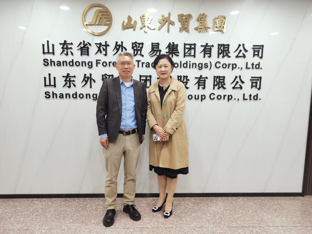 4月20日,国际官员研修学院院长王应喜一行赴山东省对外贸易集团有限公司走访座谈,受到公司总裁隋丽丽和海外事业部总经理苏珂的热情接待。