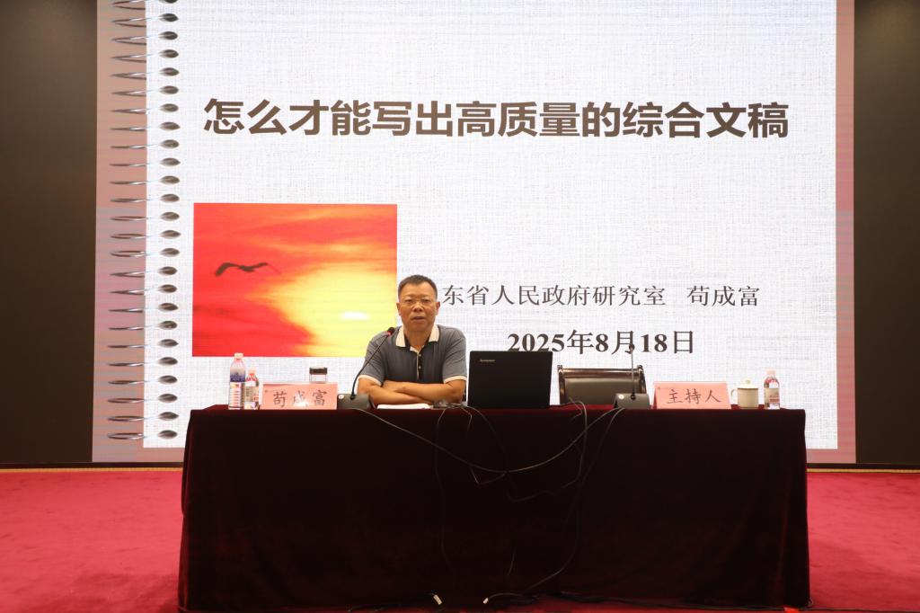 读书班分为专题辅导、交流研讨和现场教学三个环节。在专题辅导阶段,学院特邀省人民政府研究室原副主任苟成富、省委党校应急管理培训部副主任仝鹏、滨州职业学院二级教授傅智端、浙江大学信息技术中心钱喆敏,围绕“公文写作规范”“应急处突能力”“‘十五五’规划编制”“数字治理与AI赋能”等热点话题开展专题讲座,切实提升学院领导干部核心能力。