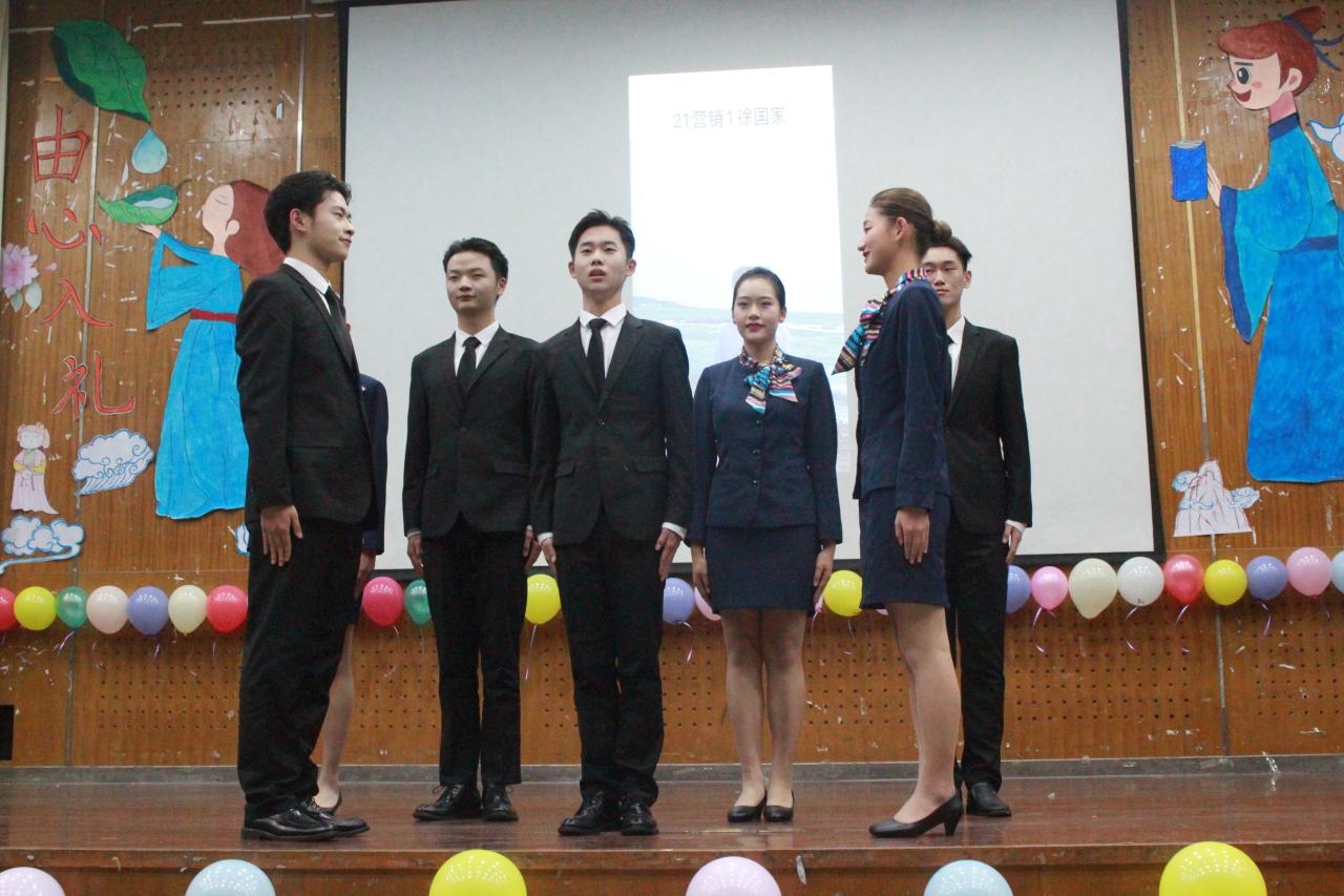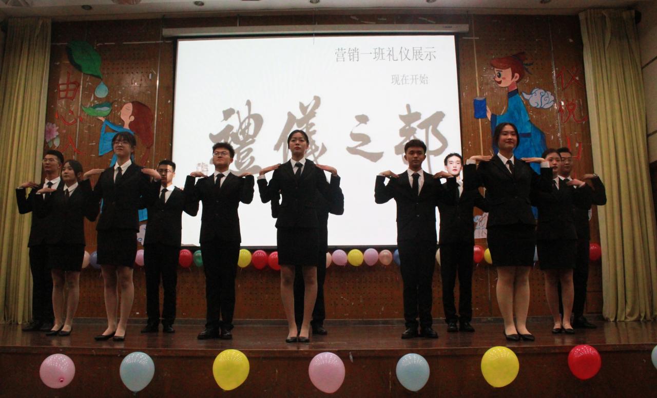 此次比赛以“由心入礼、仪悦山外”为主题,共六个参赛团队,每个团队以礼仪操、“情景剧”的形式展示礼仪表演。各团队参赛选手先后展示了礼仪操的站、坐、走、蹲姿以及握手礼,并且以不同场景为背景展示职业中的礼仪。他们的举止优雅大方、仪态端庄有礼。台下的观众也呐喊着为各自班级的参赛者加油打气。经过激烈角逐,21营销2班获得大赛一等奖和最佳表演奖。
