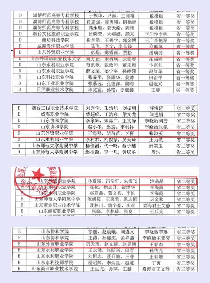 10月4日,2021年全国大学生数学建模竞赛山东赛区获奖名单公布,我院四支参赛代表队在专科组比赛中喜获山东赛区一等奖1项、二等奖2项、三等奖1项。