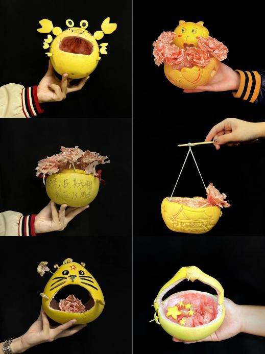 十月飘香,柚子传情,清澈的爱,只为中国。恰逢国庆佳节,学院为学生发放传情柚子,为锻炼学生的思维创新意识,提高动手创造能力,国际运输与物流系开展了柚子皮传情文创活动。全体同学以宿舍为单位,以柚子皮为原料进行创意手工艺品制作,向祖国母亲致以最崇高的敬意。学生的文创作品给庆祝国庆提供了一种新的打开方式,不拘泥于传统,不迎合流俗,既有文化的张力,也有时代的活力,共同诠释了对祖国的热爱。