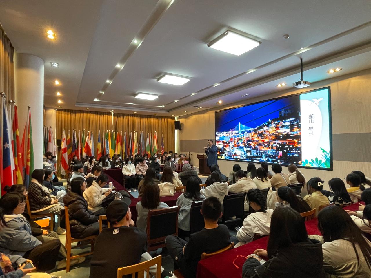 11月25日下午2点,由图书馆读者沙龙举办的第六期“真人图书馆——泡菜国漫游记”活动在图书馆四楼会议室成功举办。本次活动特别邀请了商务外语系教师郭子健作为本期的“真人图书”,郭子健与我院80多位读者交流了他在韩国国立全南大学留学期间有趣且精彩的异国轶事。
