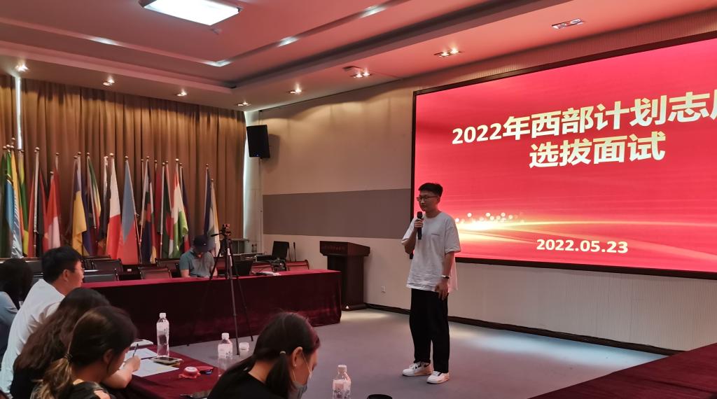 下午面试中,同学们结合自身经历和个人特点,向评委们介绍了自己在校期间的日常表现、参与志愿服务的经历、家庭支持度、环境适应能力等,并畅谈了报名参加西部计划的理由以及未来的计划和想法,纷纷表达出对志愿服务的极大热情和扎根基层、投身西部地区建设的坚定决心。