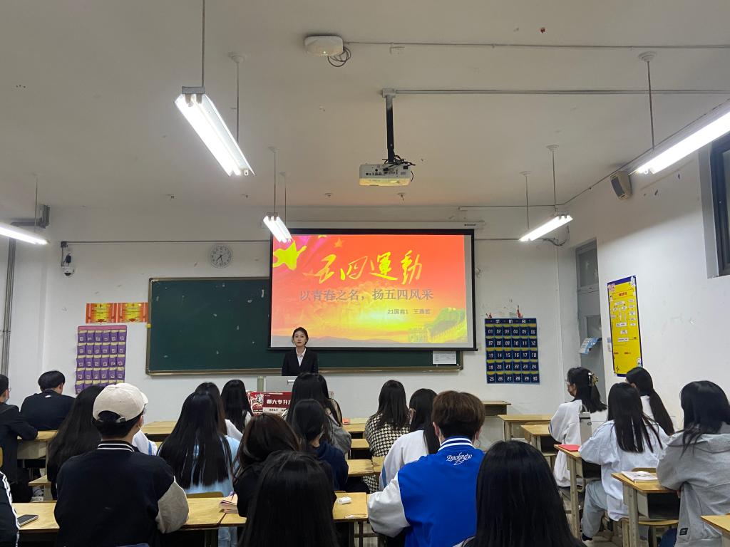 5月1日晚,国际贸易系团总支逐梦•宣讲团走进国际贸易系2021级学生开展“五四精神”宣讲活动。本次宣讲以庆祝建团100周年为契机,以爱国主义为核心,强化外贸学子责任担当,引导外贸学子与祖国的发展同频共振,做合格社会主义接班人。