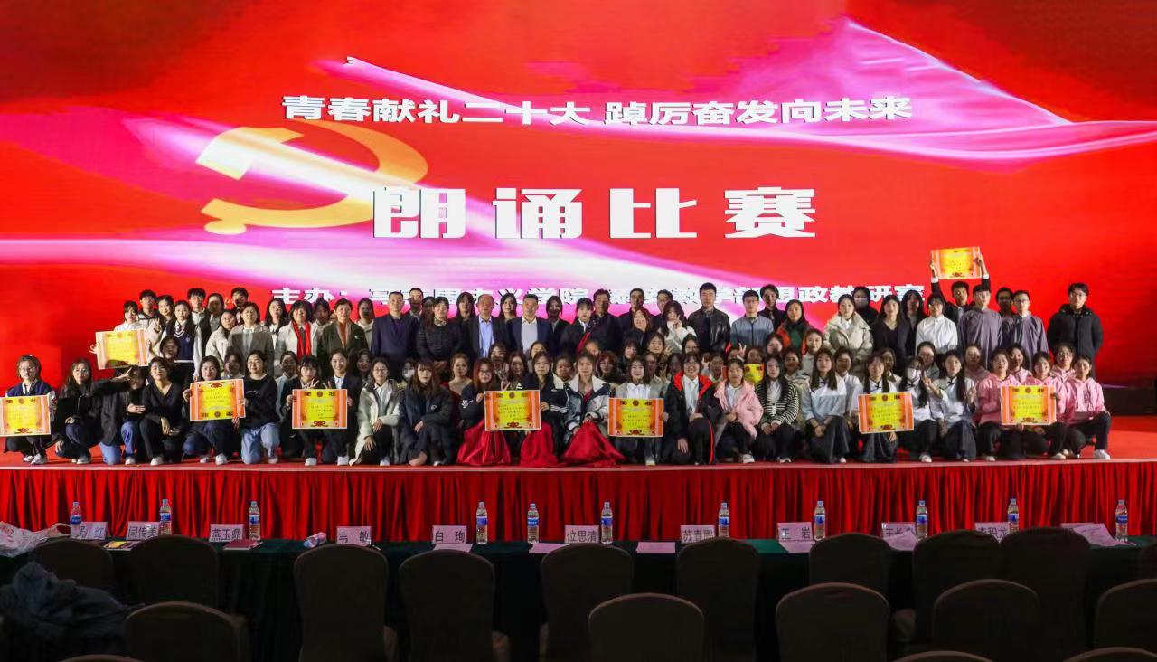 为深入学习宣传贯彻党的二十大精神,进一步激发广大学生爱党爱国热情,努力成为堪当民族复兴重任的时代新人,11月20日下午,泰安教学部在新校区泰山会堂举行了“青春献礼二十大 踔厉奋发向未来”朗诵比赛活动。泰安教学部党委书记白珣、主任位思清出席活动,部分思政课教师及辅导老师担任评委。
