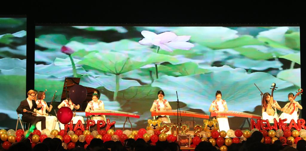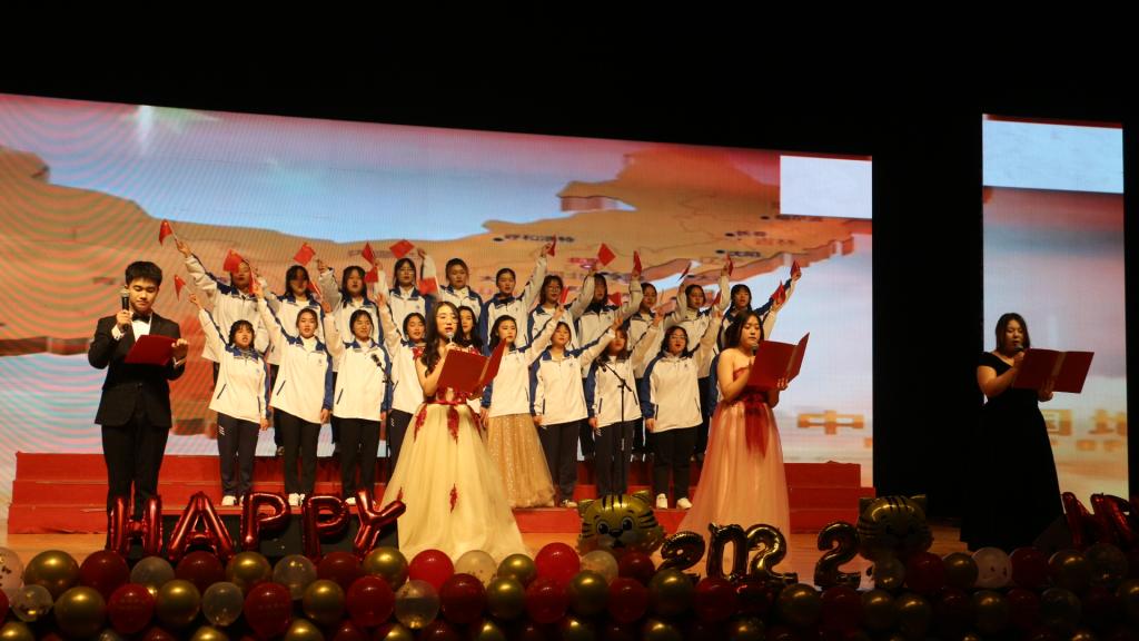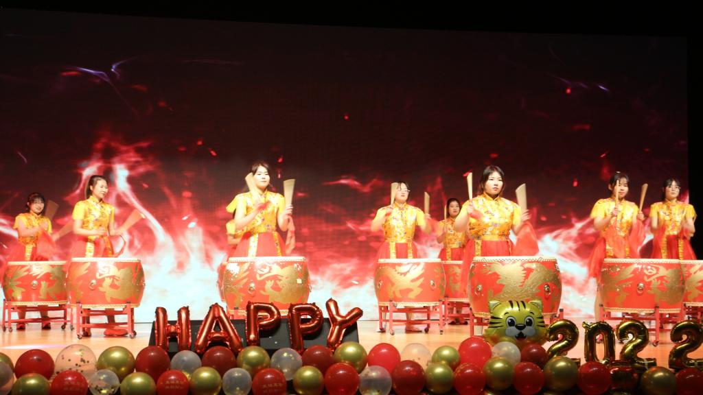 暖场视频播放后,齐韵鼓乐社带来的开场舞《权御天下》拉开了晚会的序幕;民族舞《芒种》以曼妙优雅、婉约优美的舞姿吸引了在场观众的眼球;朗诵《今天我们这样爱国》和《我的祖国》豪迈奔放、声情并茂;小品《两道门》让爱的真谛在隆冬的寒冰中传递;乐器《荷塘月色》悦耳动听,现场吉祥物“财多多”和“金小贝”的抽奖活动更使现场气氛愈加热烈。晚会最后在合唱《明天会更好》中落下帷幕。