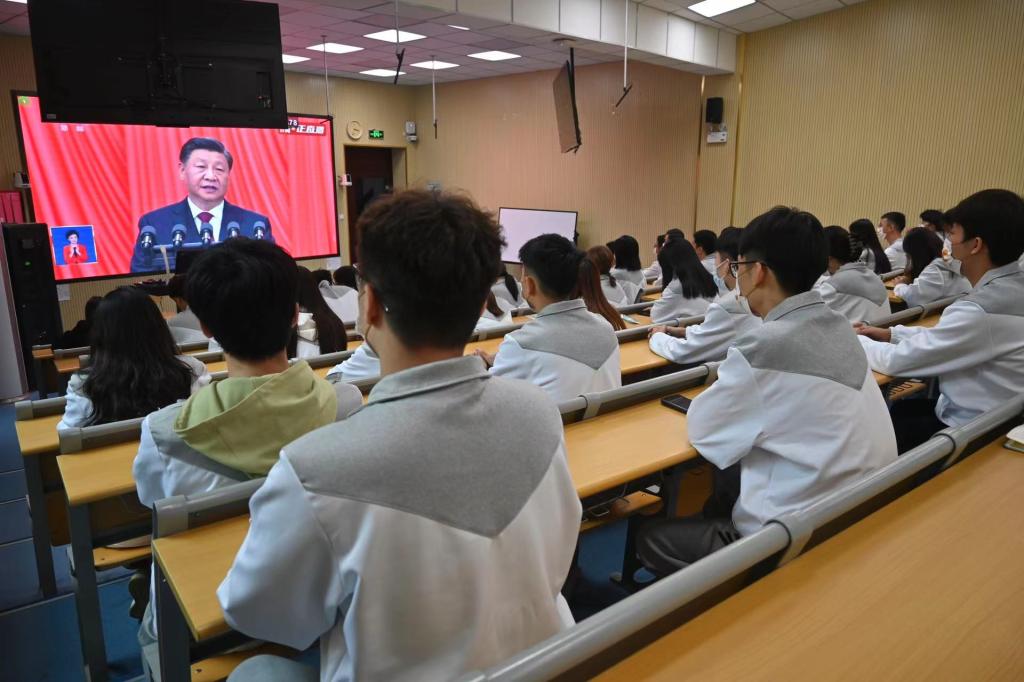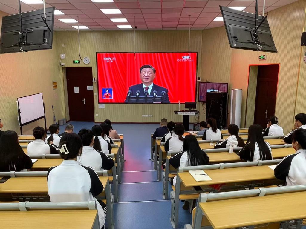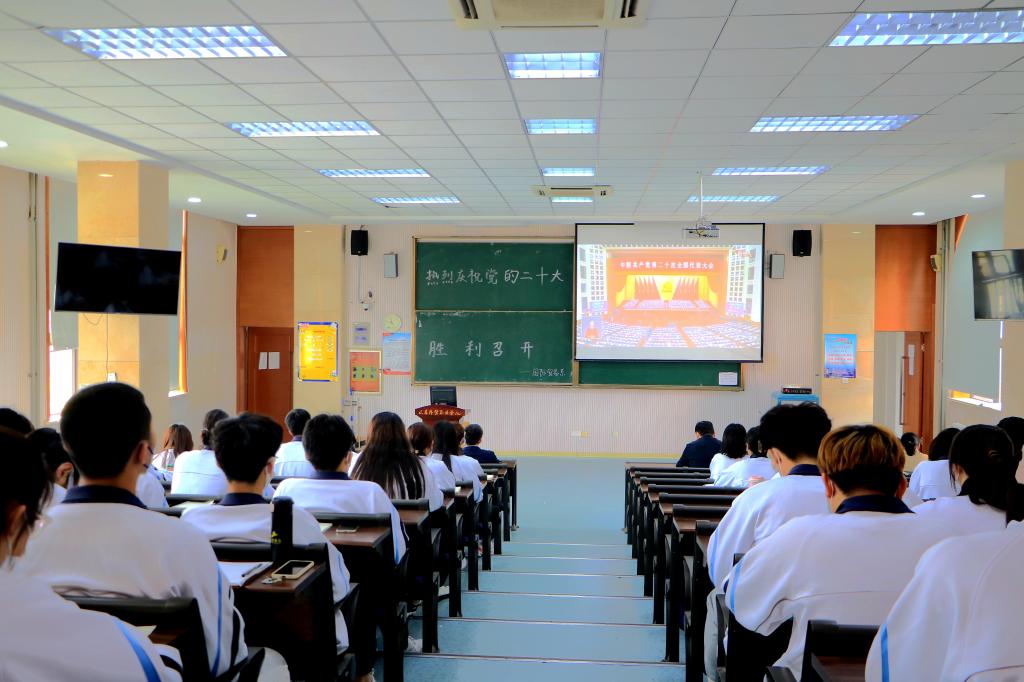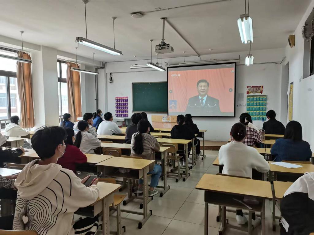 中国共产党第二十次全国代表大会10月16日上午10时在北京人民大会堂开幕。习近平总书记代表十九届中央委员会向大会作报告。学院各级团学组织和青年学生认真收听收看了党的二十大开幕会盛况。