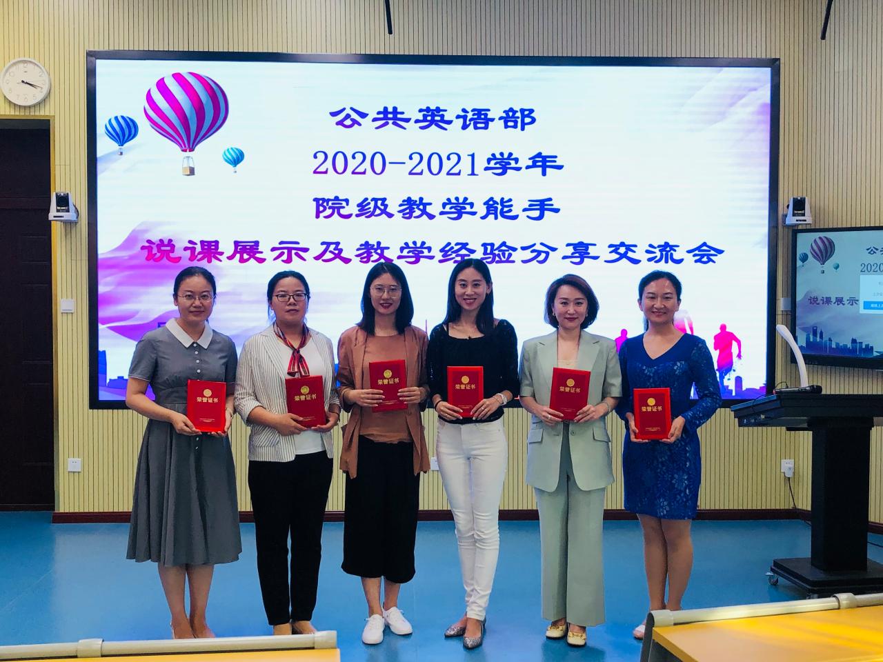 9月23日下午,公共英语部在1号教学楼智慧教室举行了2020-2021学年度院级教学能手说课展示及教学经验交流活动。公共英语部主任崔卫、党总支临时负责人王进军、副主任程诚及全体教师参加了本次活动。
