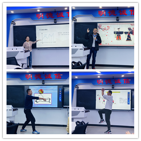 比赛分为讲述教学设计(5分钟)和模拟课堂授课(15分钟)两部分。比赛过程中,参赛教师充分利用信息化教学手段,将课堂教学与思政元素深度融合,用巧妙的教学设计、独特的学科视角,呈现了丰富多彩的课堂形式。《函数的最值》体现了“最值”在实际生活中的应用;《传统礼仪“礼的要素”》展示了礼法、礼义、礼辞等传统文化要素;《排球自垫球》《篮球行进间投篮》将运动技能与体育游戏相结合。参赛教师始终贯彻以学生为中心的教学理念,在教学过程中注重师生互动,重点突出,条理清晰,营造了轻松又有吸引力的课堂氛围。