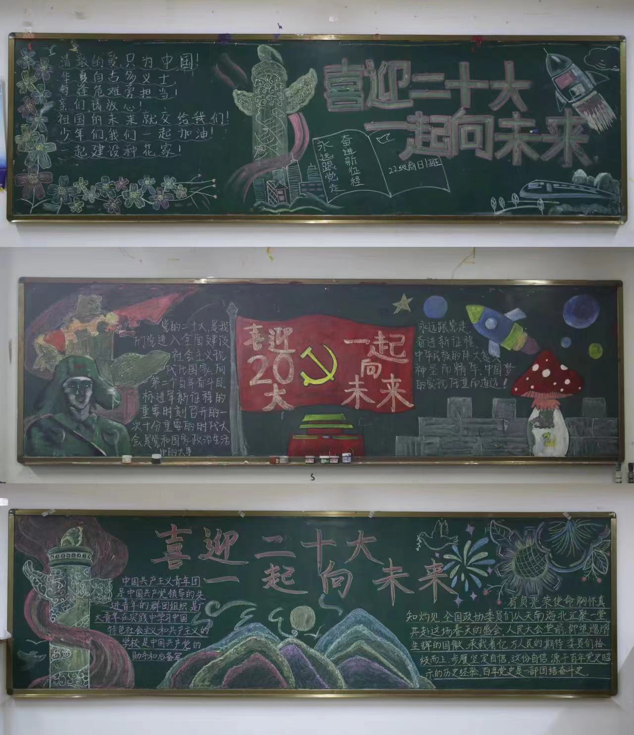 为进一步教育引导广大青年传承红色基因,引领广大青年以饱满的精神迎接党的二十大胜利召开,商务外语系于近期开展了“青春喜迎二十大 强国有我新征程”主题手抄报、2022级班级黑板报评比等主题宣传活动。