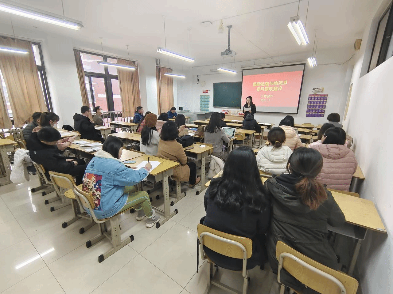 12月9日,国际运输与物流系在2号教学楼B307开展党风廉政建设会议,会议由国际运输与物流系党总支临时负责人王思文主持,国际运输与物流系全体教职工参加。