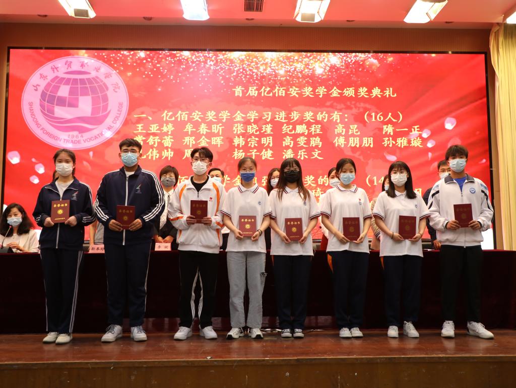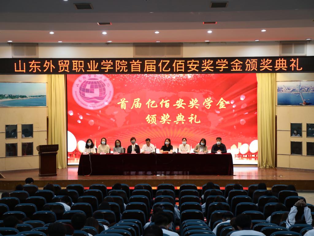 5月26日下午,我院第一届亿佰安奖学金颁奖大会在学术报告厅举行。来自国际贸易系、商务外语系、国际运输与物流系的41名获奖学生及100余名学生代表参加了颁奖大会,亿佰安化工集团副总经理刘海玲、学院副院长谷现海出席大会,集团相关部门负责人、相关系部党总支书记、相关职能部门负责人和辅导员参加了颁奖大会。