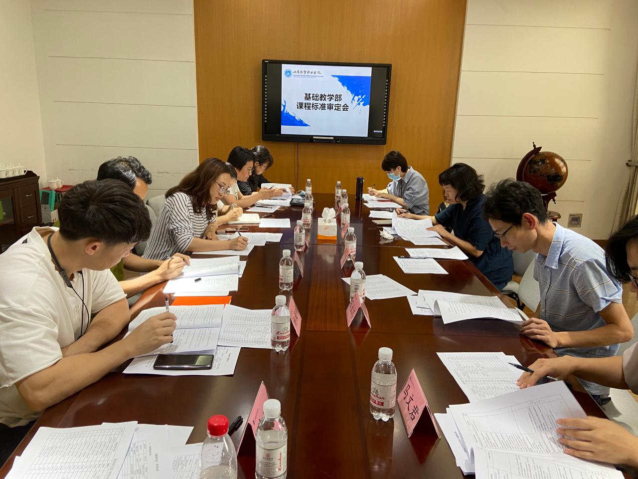 9月24日下午,基础教学部在图书馆三楼会议室召开课程标准审定会,会议由基础教学部主任吴晓明主持,副主任李艳华、各专业评审专家及教研室主任参加了会议。