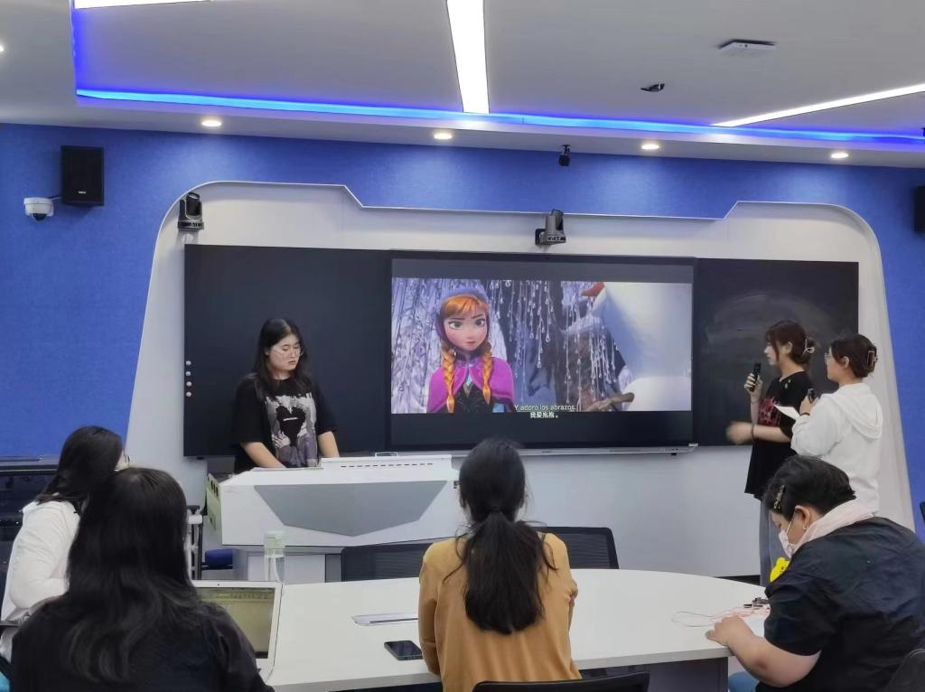 应用西班牙语配音比赛决赛由西班牙语专任教师和外教Lily担任评委。比赛现场,根据抽签决定比赛顺序,选手选取了《冰雪奇缘》、《寻梦环游记》、《憨豆先生》等大家熟悉的影视片段作为参赛作品,选手们流利的法语配音,惟妙惟肖的动作、神态模仿,赢得了现场观众的阵阵掌声。最终,2020级西班牙语班于鑫等的《冰雪奇缘》配音获得一等奖。