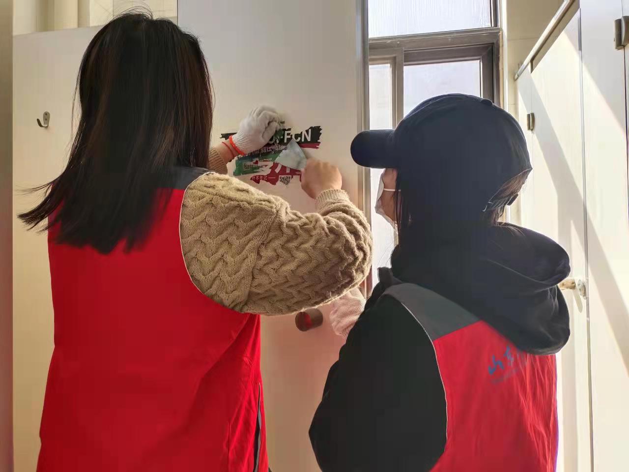 上午9点,学生会成员及志愿者们在图书馆门前集合。负责人就本次活动进行了任务分工,同时向各组发放了手套和清洁工具,随后,大家以小组为单位分别对校园主干道、绿化带、教学楼卫生间等公共设施、区域和卫生死角进行清洁。
