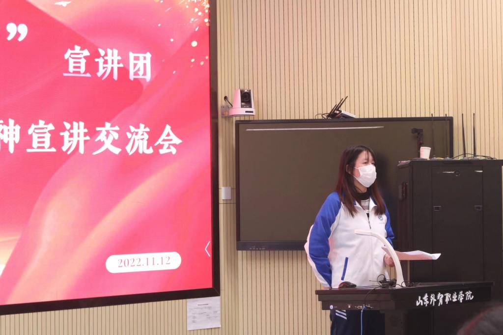 宣讲结束后,宣讲团与团员青年进行了互动交流。21级会计2班学生干部李双结合自身成长经历积极发言,她表示当代青年要有担当,有责任、创新意识,要珍惜美好生活,用实际行动践行青春力量,在奋进新征程的路上勇往直前。