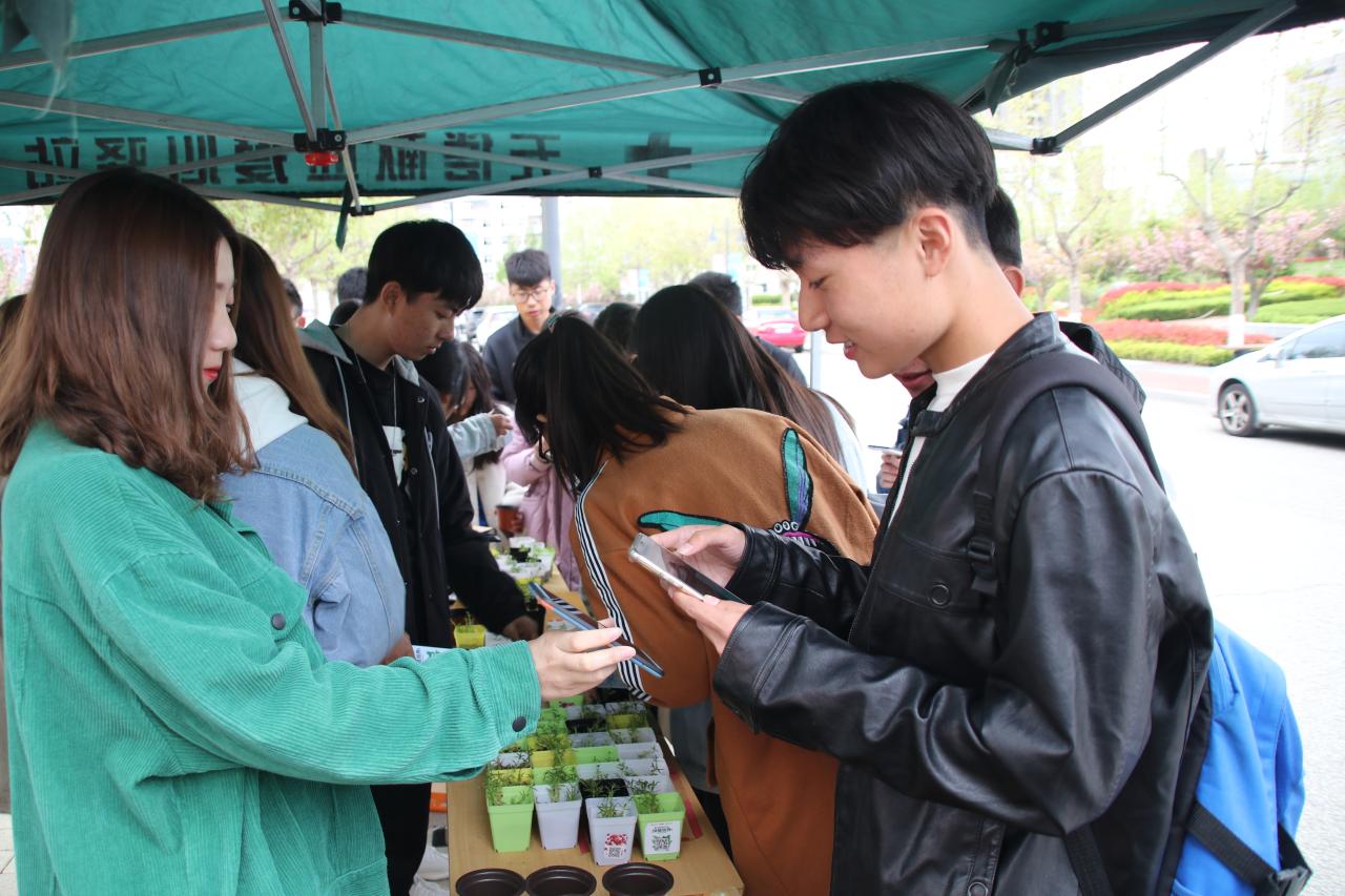 此次活动通过线上线下相结合的方式进行。活动吸引了400余名同学的踊跃参与。活动参与者通过扫描二维码,免费领取绿植。活动开始后,趣味种子、蔬菜种子等几类种子受到同学们追捧,活动开展不到一小时便一领而空。现场由不少同学对所领的种子表现出极大的兴趣,拿到种子后马上用手机查询种植方法。