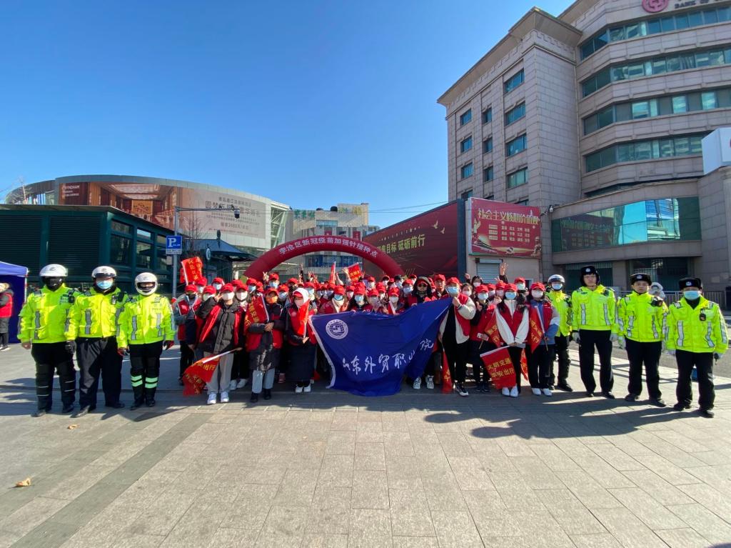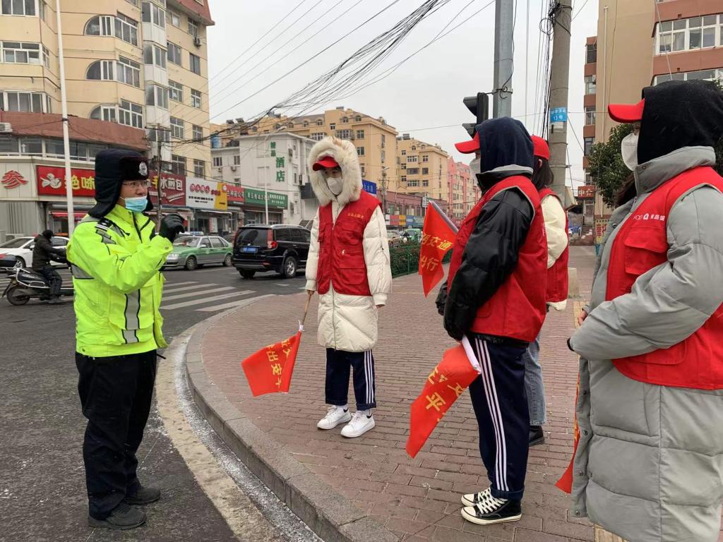 为助力青岛市全国文明典范城市创建工作,进一步提高文明交通意识,倡导出行有序的道路礼仪风尚,营造文明、和谐、安全的道路交通环境,近日,我院与交警李沧大队在李村商圈联合开展“助创城,促文明”交通劝导志愿服务活动。
