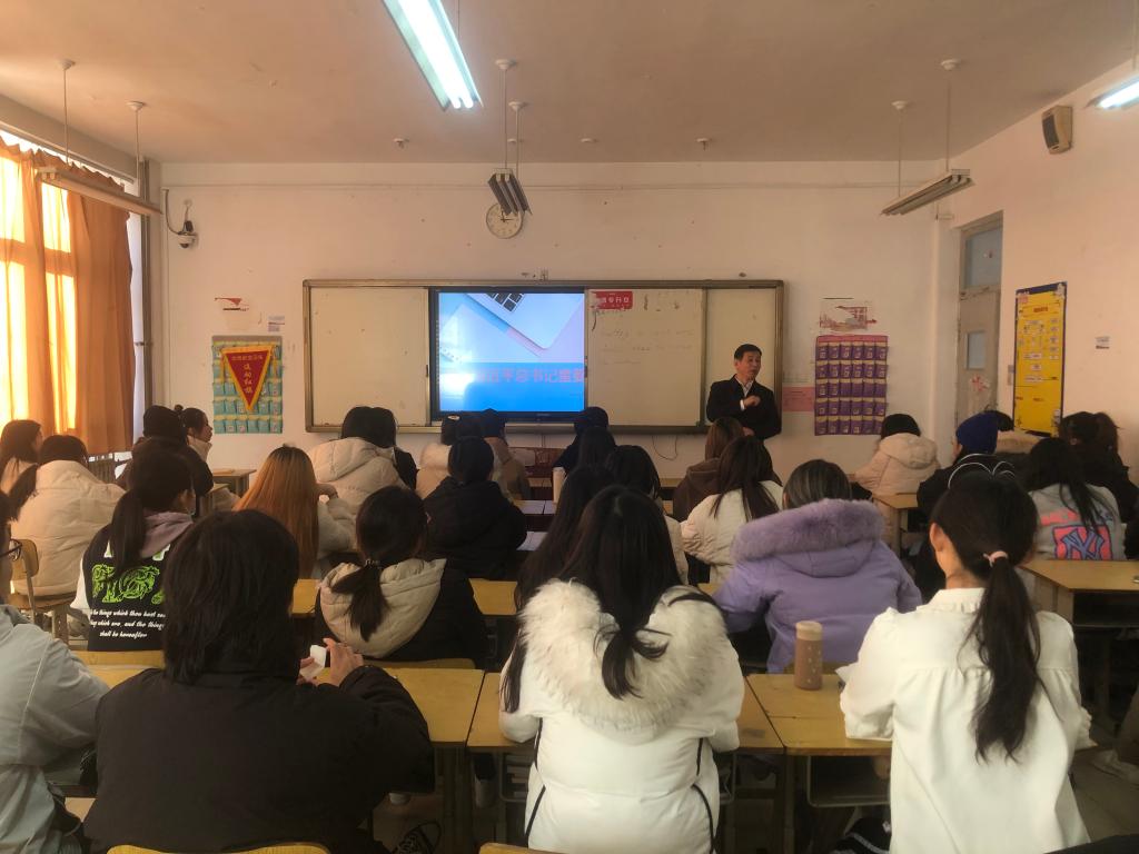 12月13日下午,商务外语系2021级商务英语六班在2号教学楼B202召开“做新时代外语人才”主题班会,副院长谷现海,商务外语系党总支书记刘永美、辅导员路鹏宇参加了本次班会。