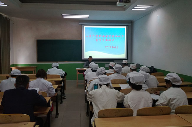 为普及食品安全科学常识,提高食堂从业人员的基本素质,安全检查后,校区总务科组织餐厅工作人员进行食品安全培训,培训主要围绕《食品安全法》、《餐饮服务食品安全监督办法》、《学校食品安全与营养健康管理规定》等食品安全相关法律、法规、规章、标准和相关专业知识展开,从食堂设备使用要求、食品采购、食品贮存、食品供应要求、餐厅从业人员要求、监督管理要求、食品安全事故应急处置等方面进行详细讲解,食品供货商、餐厅员工约二十余人参加培训。会后,对餐厅员工进行了食品安全常识测试。