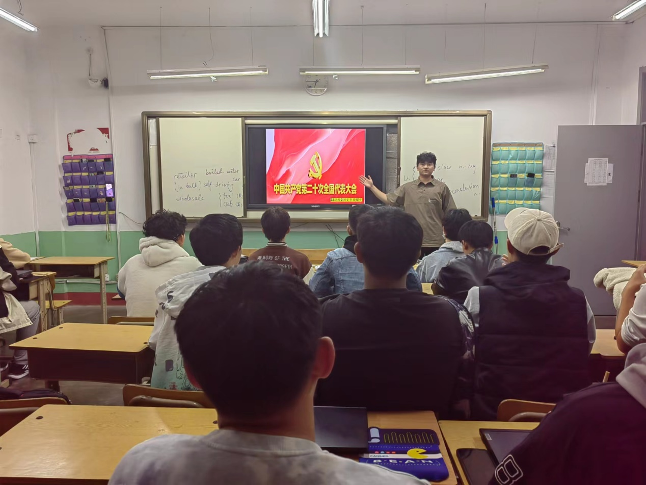 党的二十大胜利召开以来,学院团委认真部署和推进党的二十大精神学习宣传,以各级团组织为单位开展组织化学习,推进二十大精神学习宣传覆盖全体团员青年。依托第二课堂成绩单制度和“到梦空间”系统,结合青年大学生的思想和学习特点,推出以党的二十大精神为主要内容的专题团课,全院各团支部充分运用早晚自习等时间,以团支部书记讲团课的形式,带领团员青年一起学习党的二十大报告和习近平总书记重要讲话精神。
