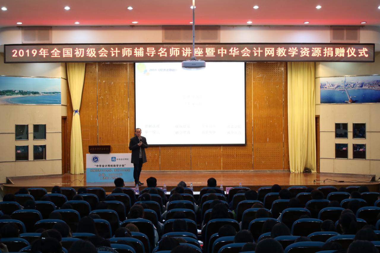 为激发学生们的学习热情,支持学生在校期间考取初级会计师证书,我院加入了中华会计网校助学计划,3月27日,财会金融系在学术报告厅举行2019年全国初级会计师辅导名师讲座暨中华会计网教学资源捐赠仪式。中华会计网校校园项目总监张时赫、特聘讲师洪宇,我院财会金融系党总支书记周新征、会计专业教师唐智昊、辅导员吴欣刚及400余名学生代表参加了本次活动。