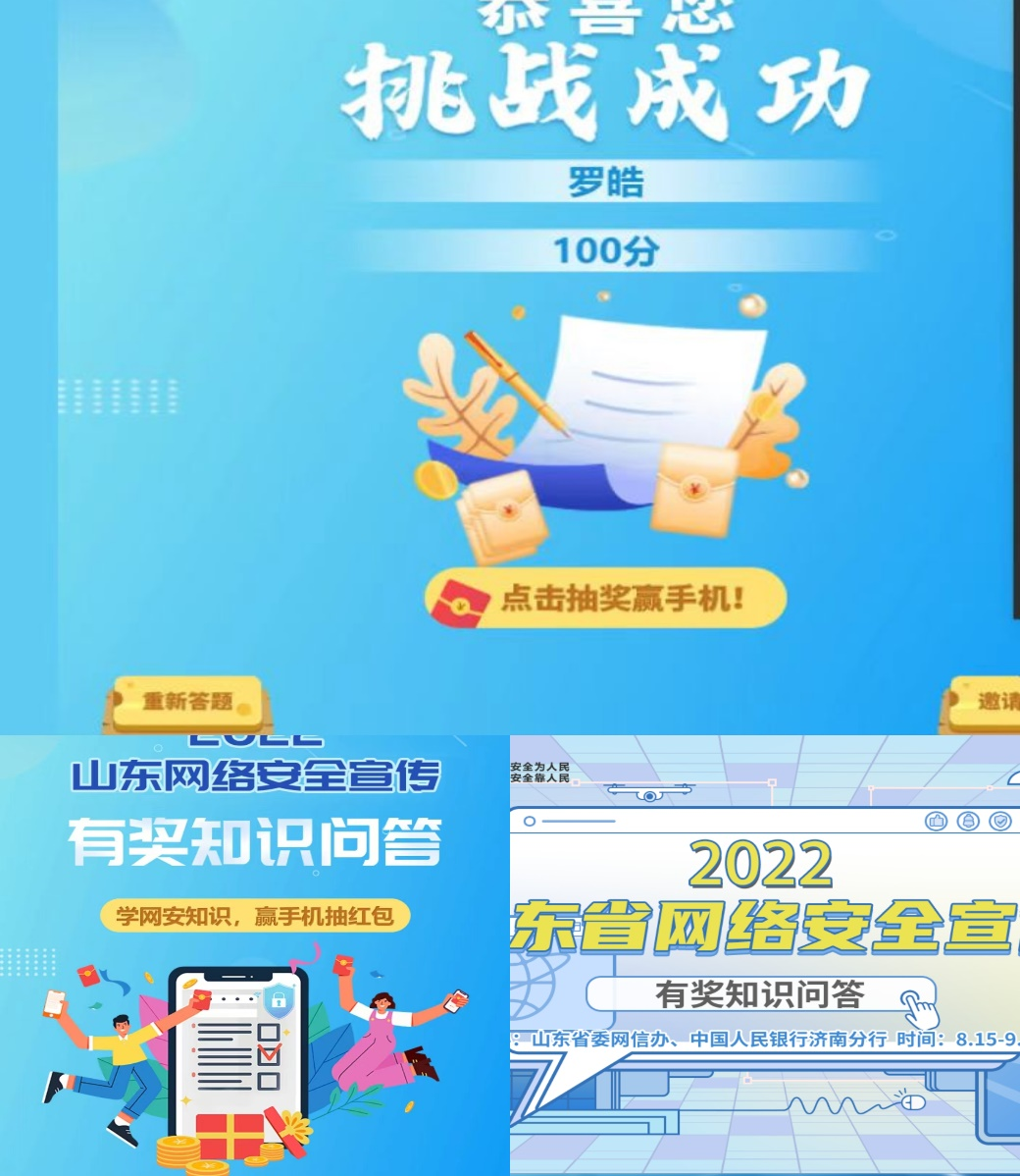 为普及网络安全知识,提高网络安全意识,掌握基本防护技能,筑牢网络安全基础,我院组织师生参加了2022山东网络安全宣传有奖知识问答活动,取得了良好效果。