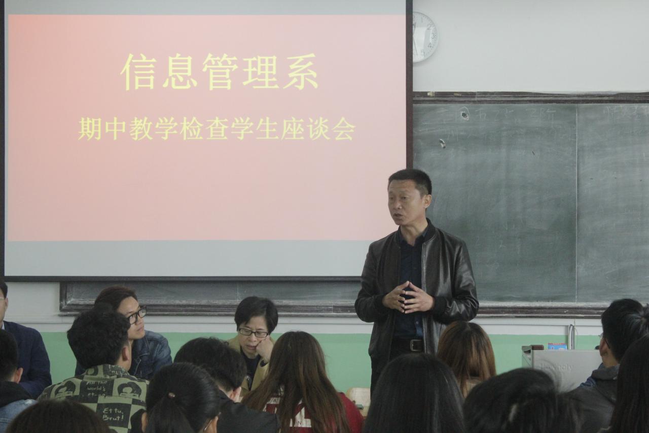 4月23日中午,信息管理系在1号教学楼217教室召开了2018-19学年第二学期期中教学检查座谈会,会议由系党总支书记李军主持,教务处、基础部、公共英语部、实训中心、图书馆等相关部门老师参会,信息管理系相关人员和2017级、2018级学生代表参加了座谈会。
