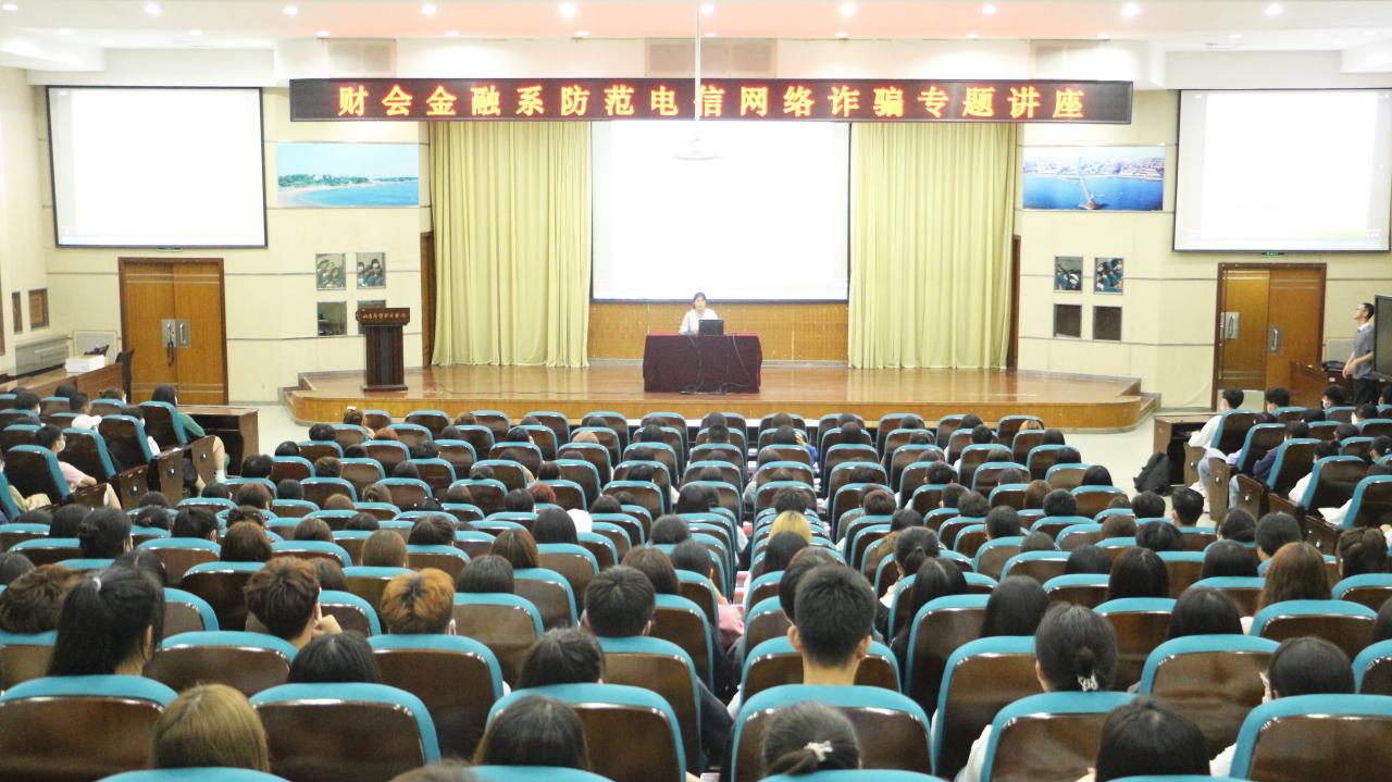 为增强学生安全意识,提高学生对电信诈骗手法的识别和防范能力,营造良好的校园环境,9月9日晚,财会金融系面向全体新生举办了“防范电信网络诈骗专题讲座”,讲座由系副主任肖长征主持,太平洋产险青岛分公司法务总监吴明艳主讲。