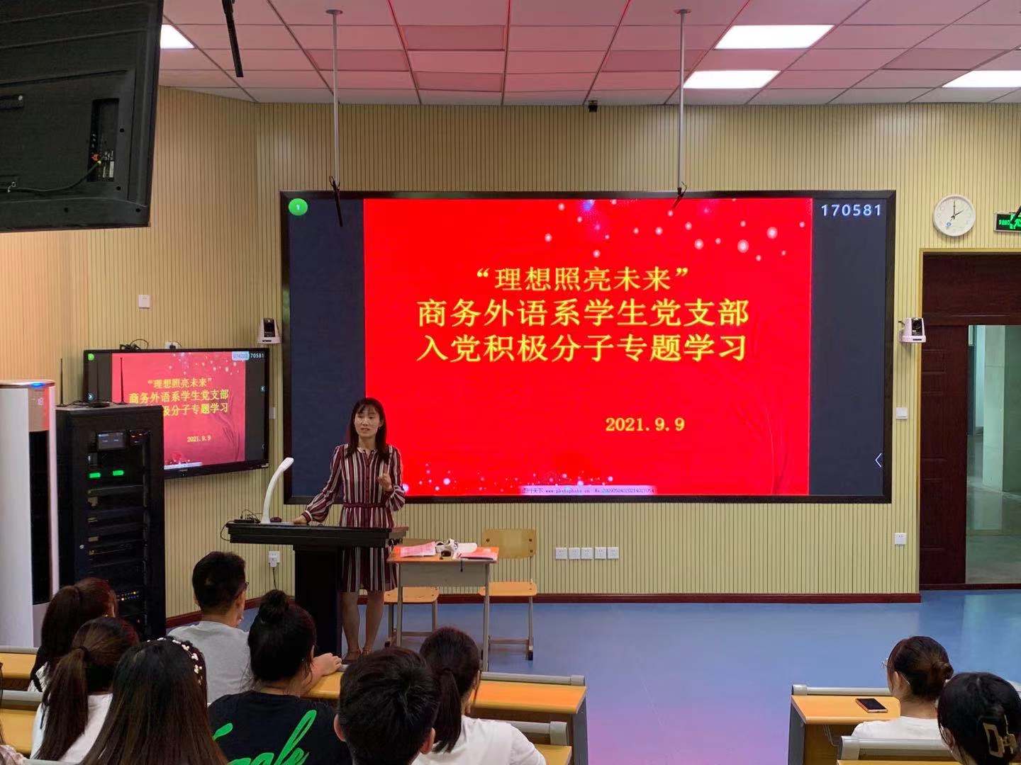 9月9日下午,商务外语系学生党支部组织入党积极分子开展了“理想照亮未来”的专题学习,支部全体入党积极分子参加,商务外语系学生党支部书记昌利娜主讲。