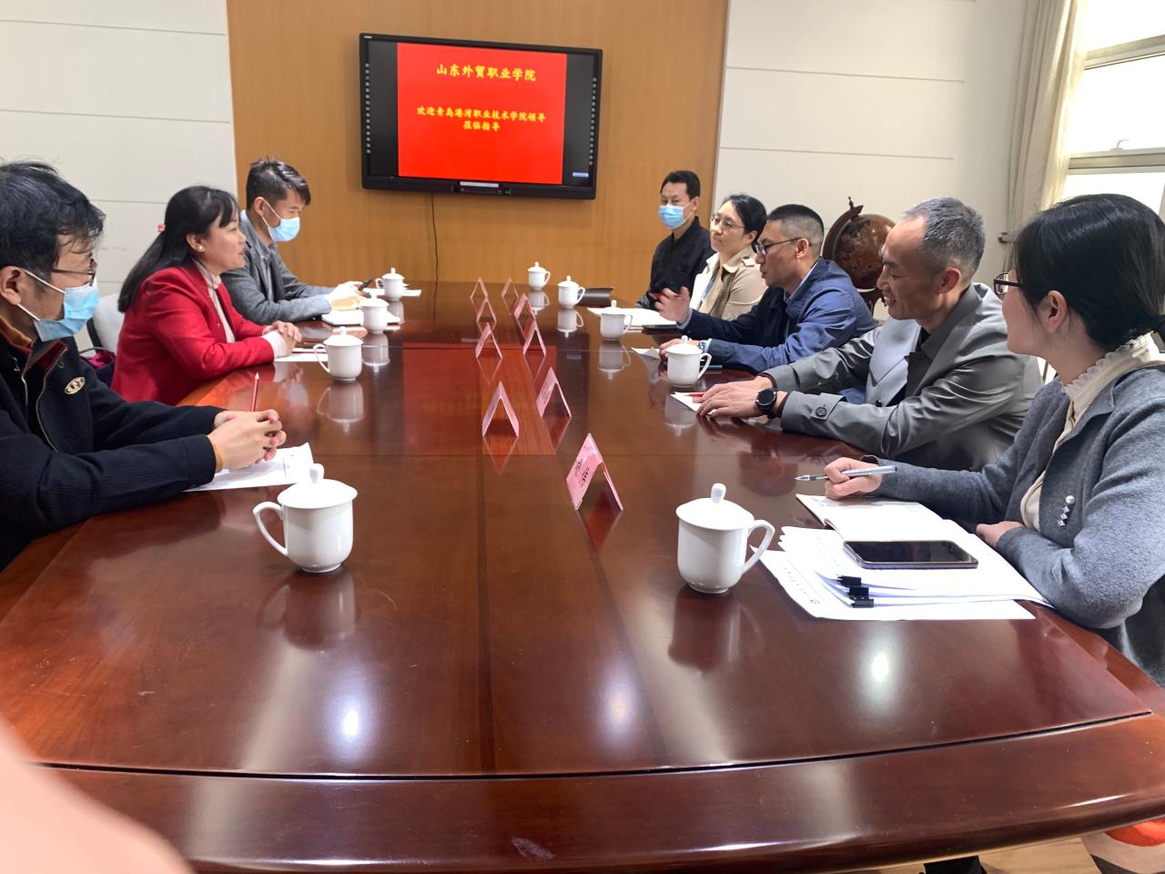 本次交流为我院国际贸易系与青岛港湾职业技术学院的沟通合作搭建了良好的平台,双方均表示希望在未来开展更多方面的学习和交流,共享信息与经验,携手发展。