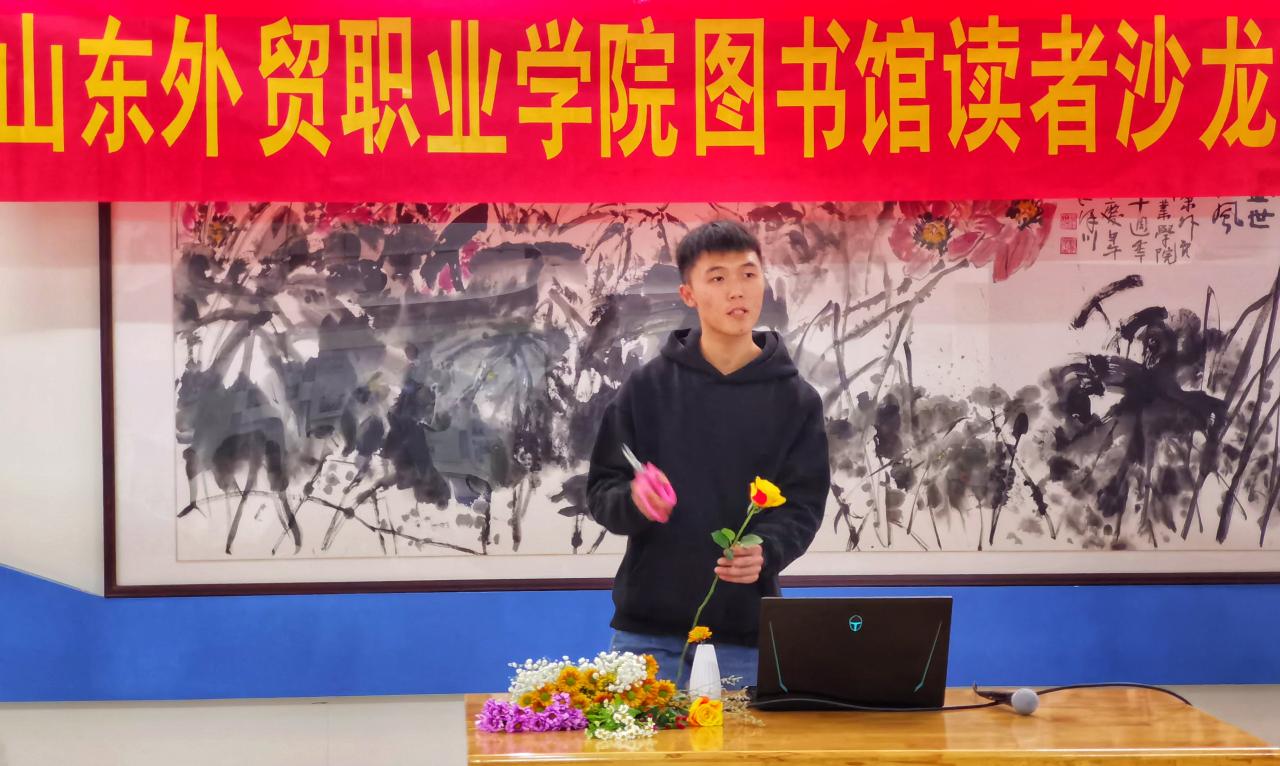 活动伊始,王锐向现场读者讲解基本的花艺知识,介绍了插花的历史、鲜花的品种、花语以及常见的插花造型,与读者分享了自己学习插花的经验与感悟,并向读者推荐了图书馆精心准备的有关花艺方面的书籍。