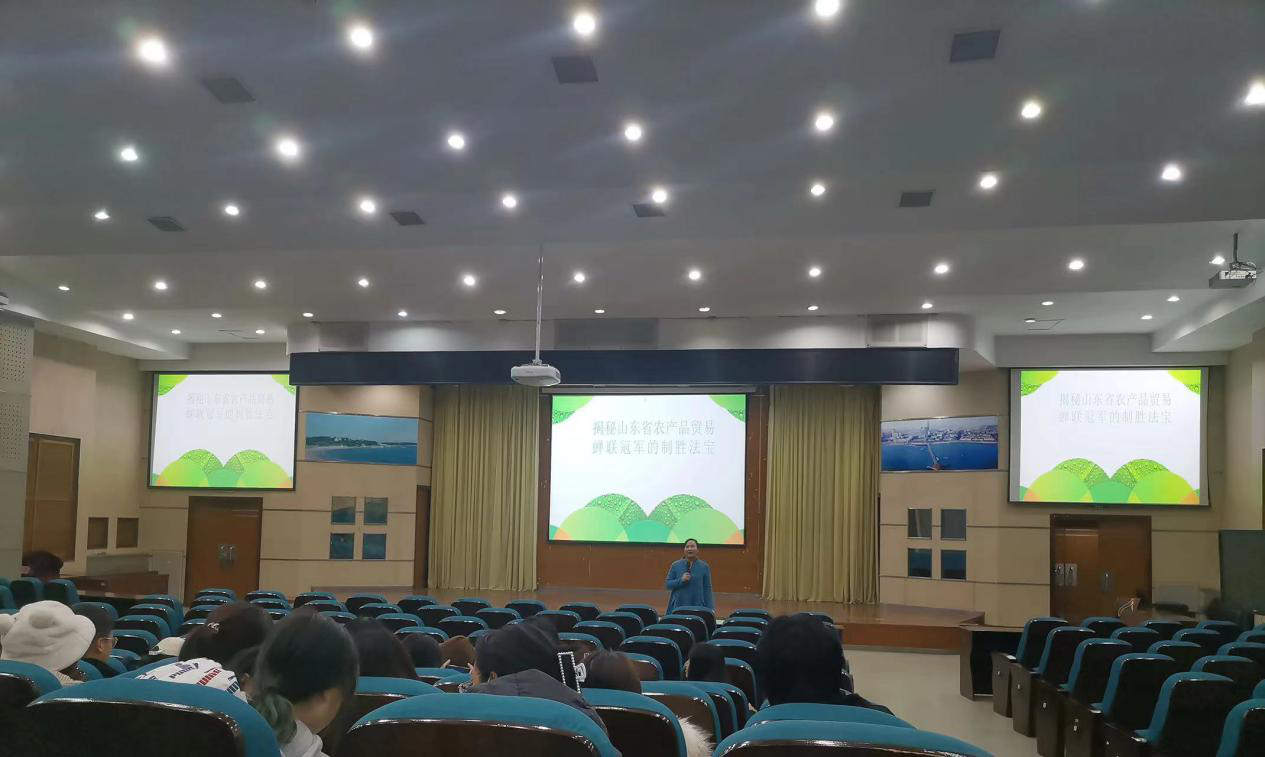 11月11日下午,第四届外贸文化节系列讲座——“揭秘山东省农产品贸易蝉联冠军的制胜法宝”在学术报告厅举行,国际贸易系副教授张秀华担任主讲,国际贸易系2020级学生参加。