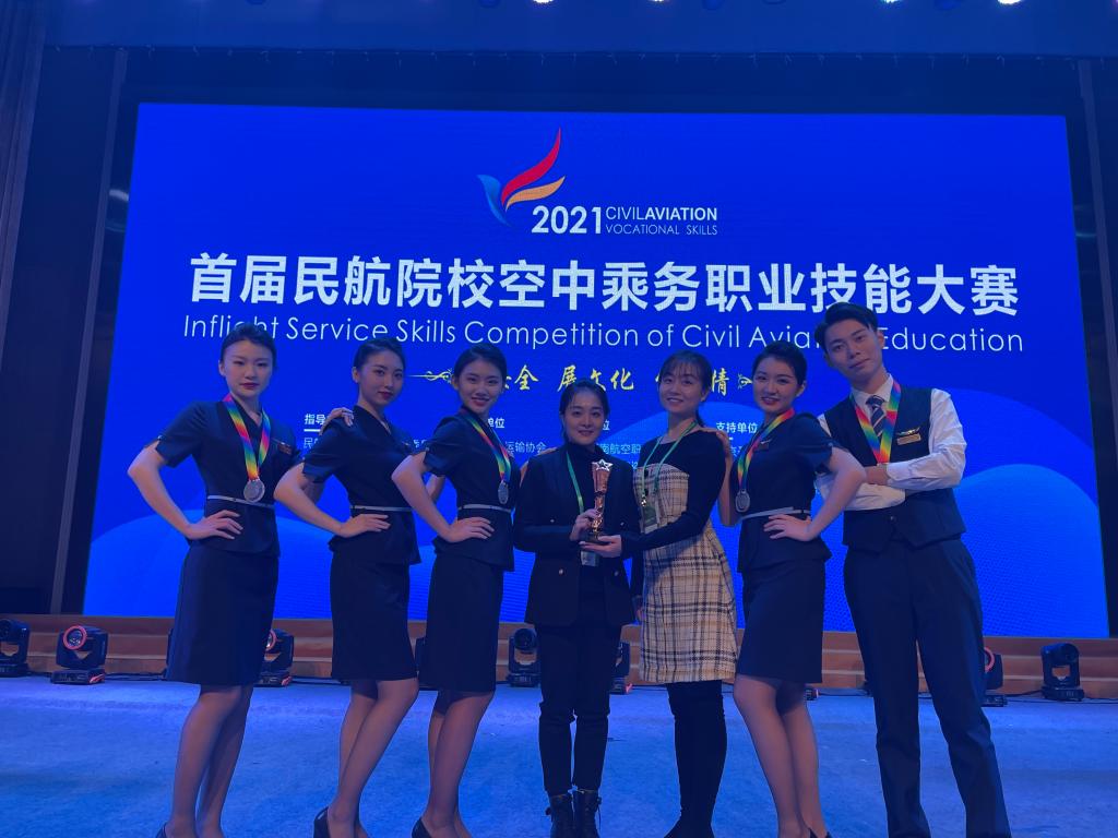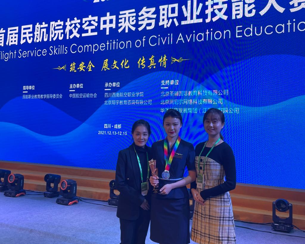 12月13-15日,我院由空中乘务专业教师陈音竹、姜琳带队、5名空乘专业学生组成的代表队赴成都参加了由全国民航职业教育教学指导委员会、中国航空运输协会主办、西南航空职业技术学院承办的2021年首届民航院校空中乘务职业技能大赛全国总决赛。