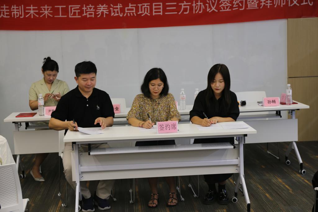 随后,校、企、学生三方分别签订了合作协议并进行了拜师仪式,“徒弟”分别向各自的“师傅”行礼敬茶。拜师仪式后,学生作为准员工进入企业,进行为期一学期的轮岗实习。