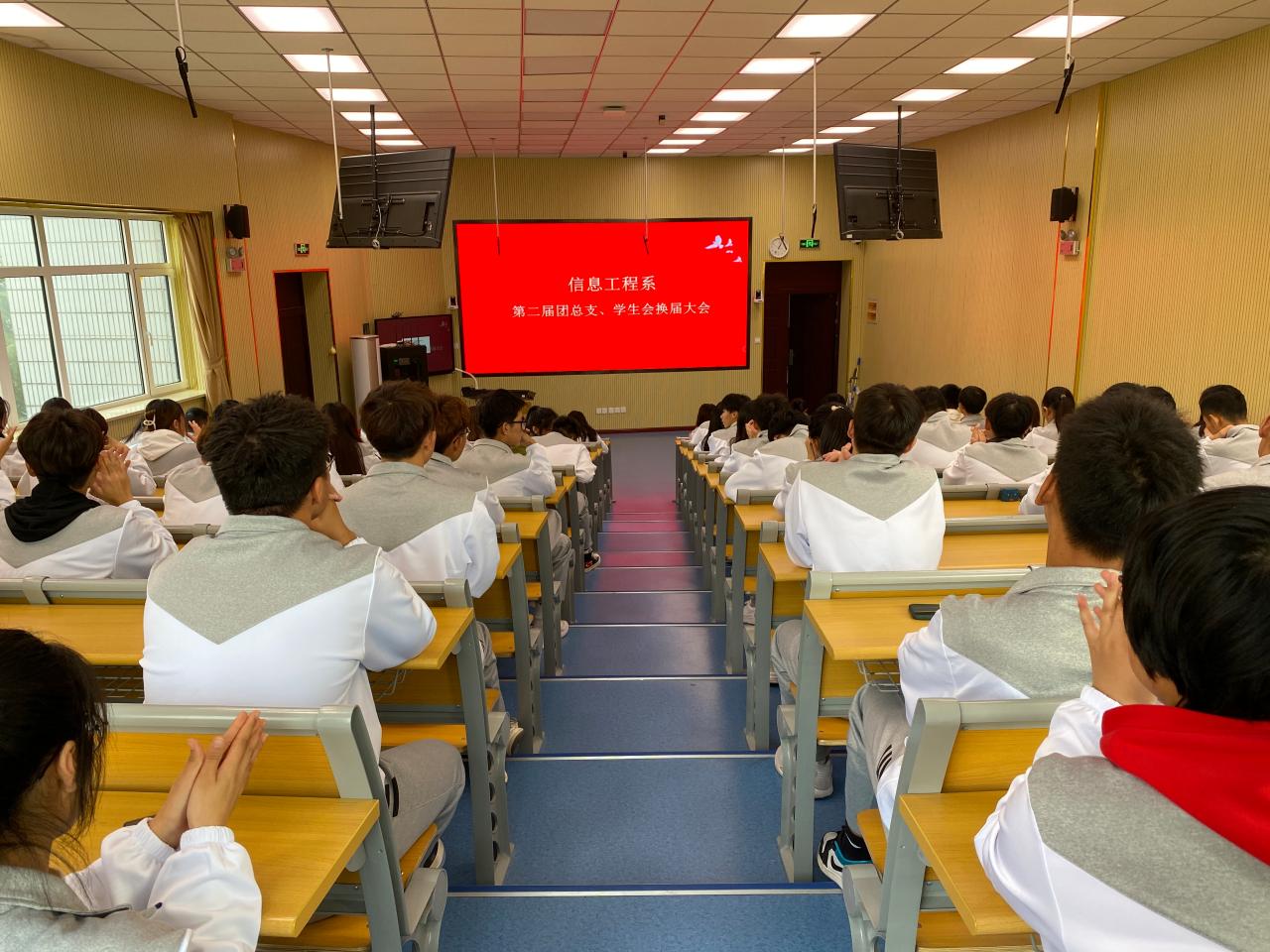 11月19日下午,信息工程系第二届团总支、学生会换届大会在李沧校区1号教学楼第四阶梯教室举行,信息工程系党总支书记梁政委、学工办主任王奉清、全体辅导员、第一届团总支、学生会全部成员和2021级学生会志愿者参加了会议。