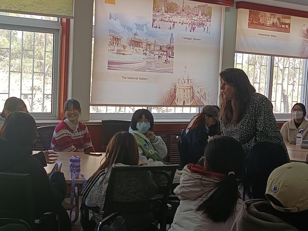 本次英语角的主题为“回顾2022,畅想2023”。活动中,师生们展开互动,共同回顾过去的2022年,大家不时提出各种问题,讲述自己的故事,Lucy用幽默风趣的方式进行解答,现场一片欢声笑语。除耐心解答同学们的问题,Lucy还对比了青岛和英国的气候,随后大家一起探讨了两国不同的交通规则和注意事项。最后,师生互相交流了2023年的目标和计划,以比心的形式表达了对生活和英语的热爱,共同度过了愉快温暖的午后时光。