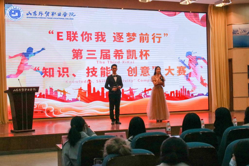 3月16日下午,商务外语系在学术报告厅举办第三届希凯杯“知识、技能、创意”大赛开幕式。副院长谷现海出席开幕式并致辞, 相关部门领导、商务外语系全体教师和学生代表参加了开幕式。开幕式在泰安校区同步直播,2022级商务英语专业学生观看了开幕式活动。
