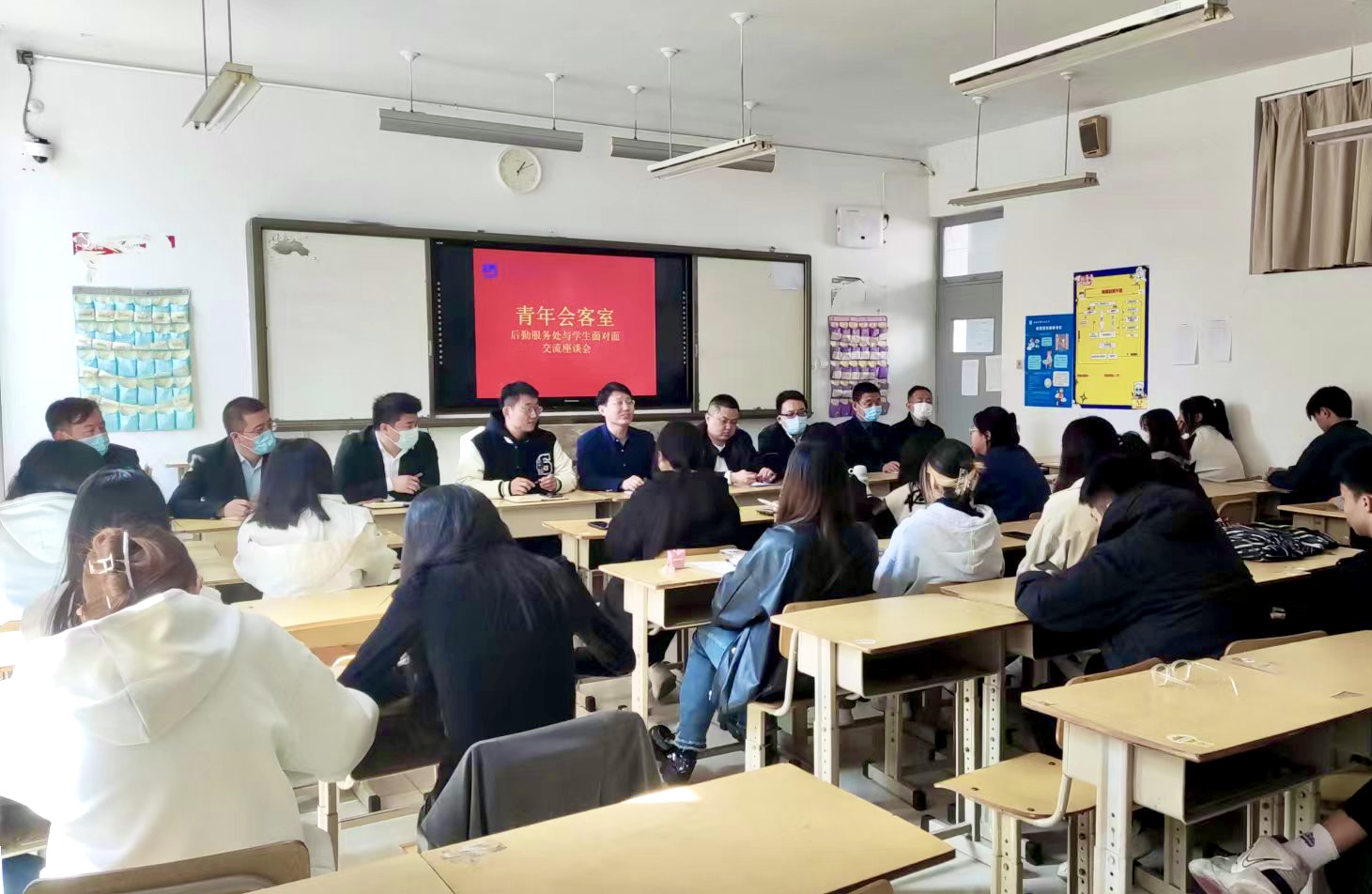 为切实解决同学们关心、关注的学院后勤服务方面的问题,深入开展“我为同学办实事”实践活动,3月28日,学院团委与后勤服务处在2号教学楼A108举办首期“青年会客室”之后勤服务交流座谈会。后勤服务处、团委、食堂、物业等部门负责人参加,20余名学生代表在座谈会上发言。会议由团委书记刘嵩主持。