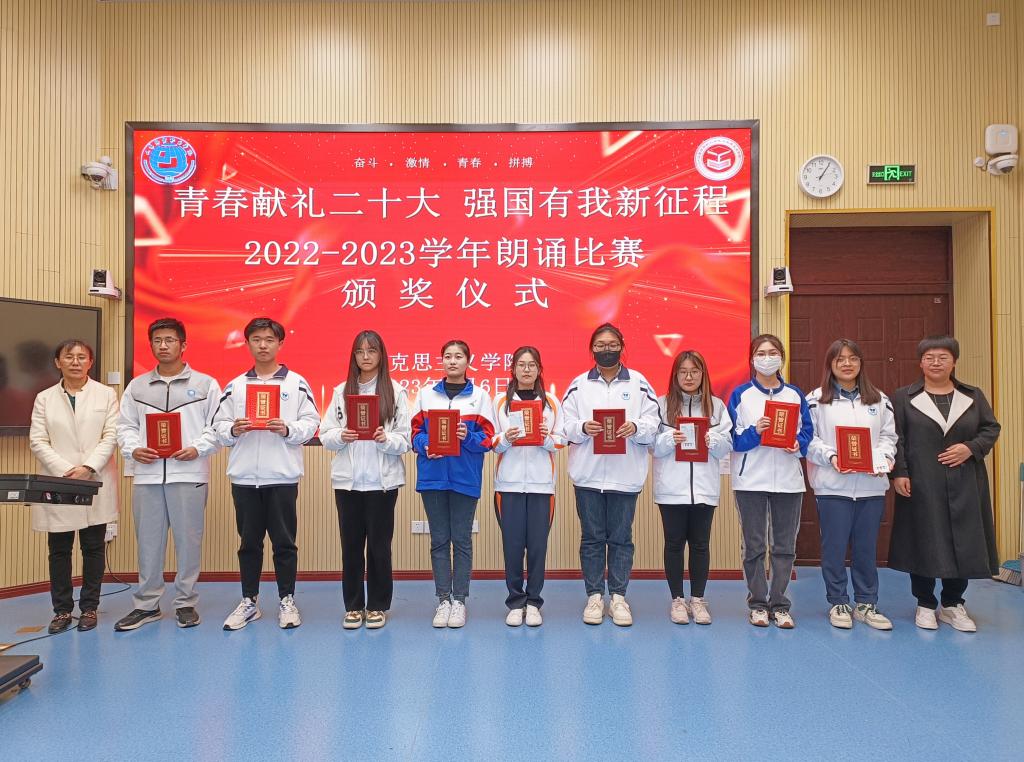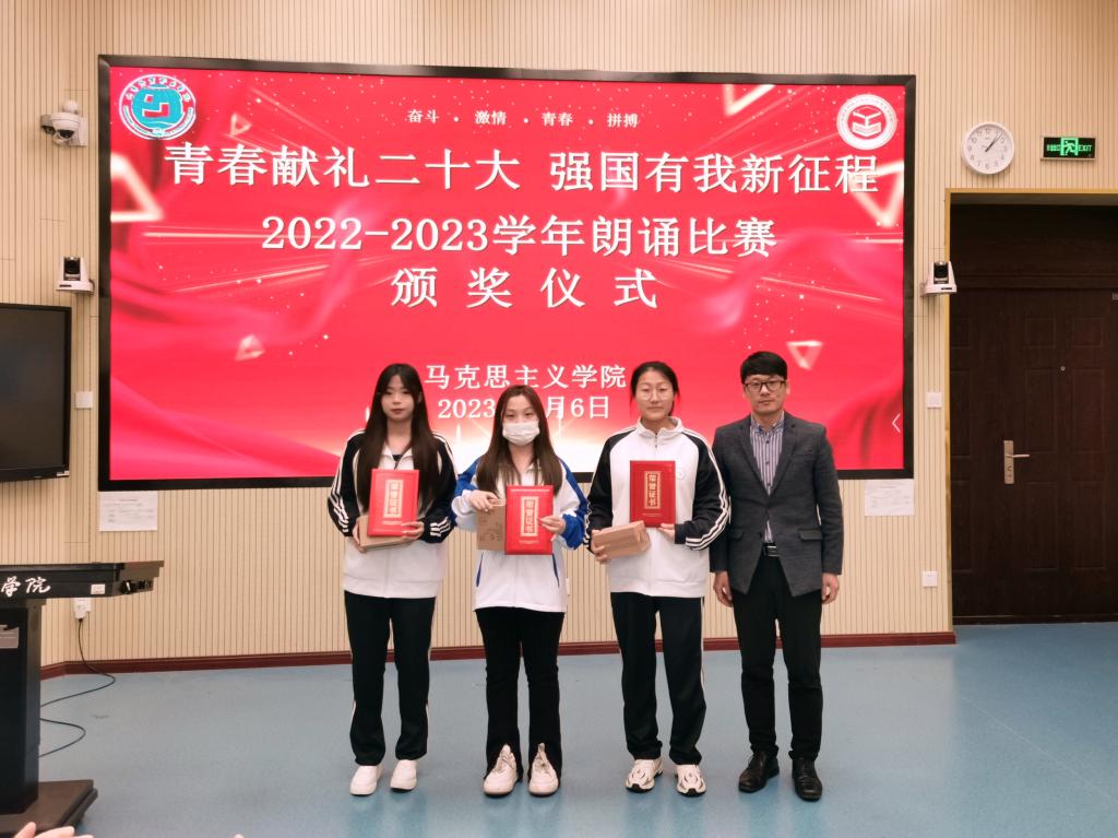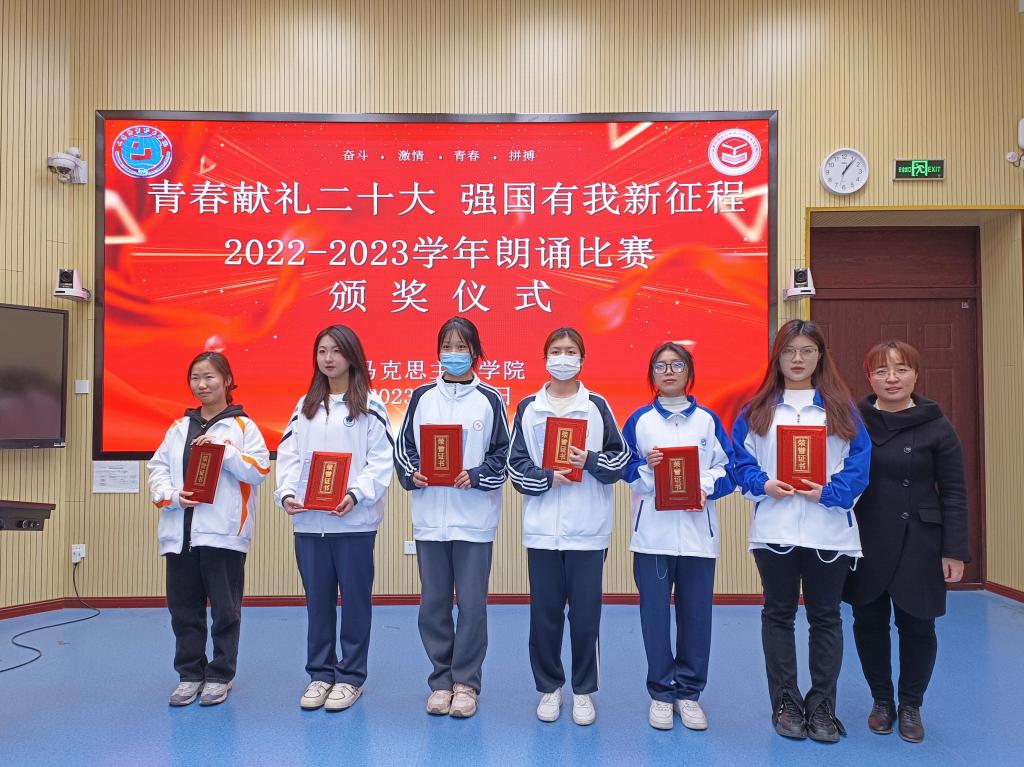 为学习践行党的二十大精神,深入推动习近平新时代中国特色社会主义思想进教材、进课堂、进学生头脑,用党的科学理论武装青年学生,马克思主义学院近日举办“学习党的二十大”主题朗诵比赛,并于4月6日在第4阶梯教室举行颁奖仪式。