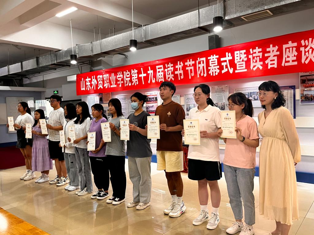 5月25日下午,学院第十九届读书节闭幕式暨颁奖仪式在图书馆校友风采室举行。图书馆副馆长王红艳、孙晓凤及相关工作人员、获奖学生代表等参加了闭幕式。